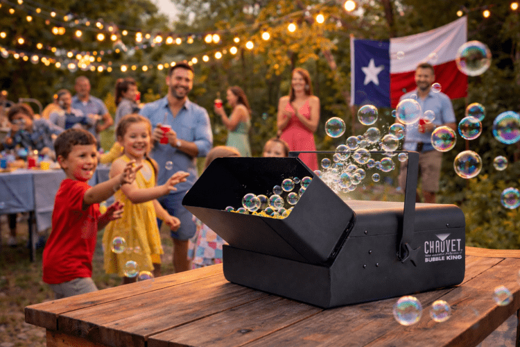Make your event unforgettable with our professional Bubble Machine rental in North Dallas. Perfect for birthday parties, school events, church celebrations, HOA block parties, and backyard gatherings, this high-output machine fills your space with hundreds of floating bubbles per minute.